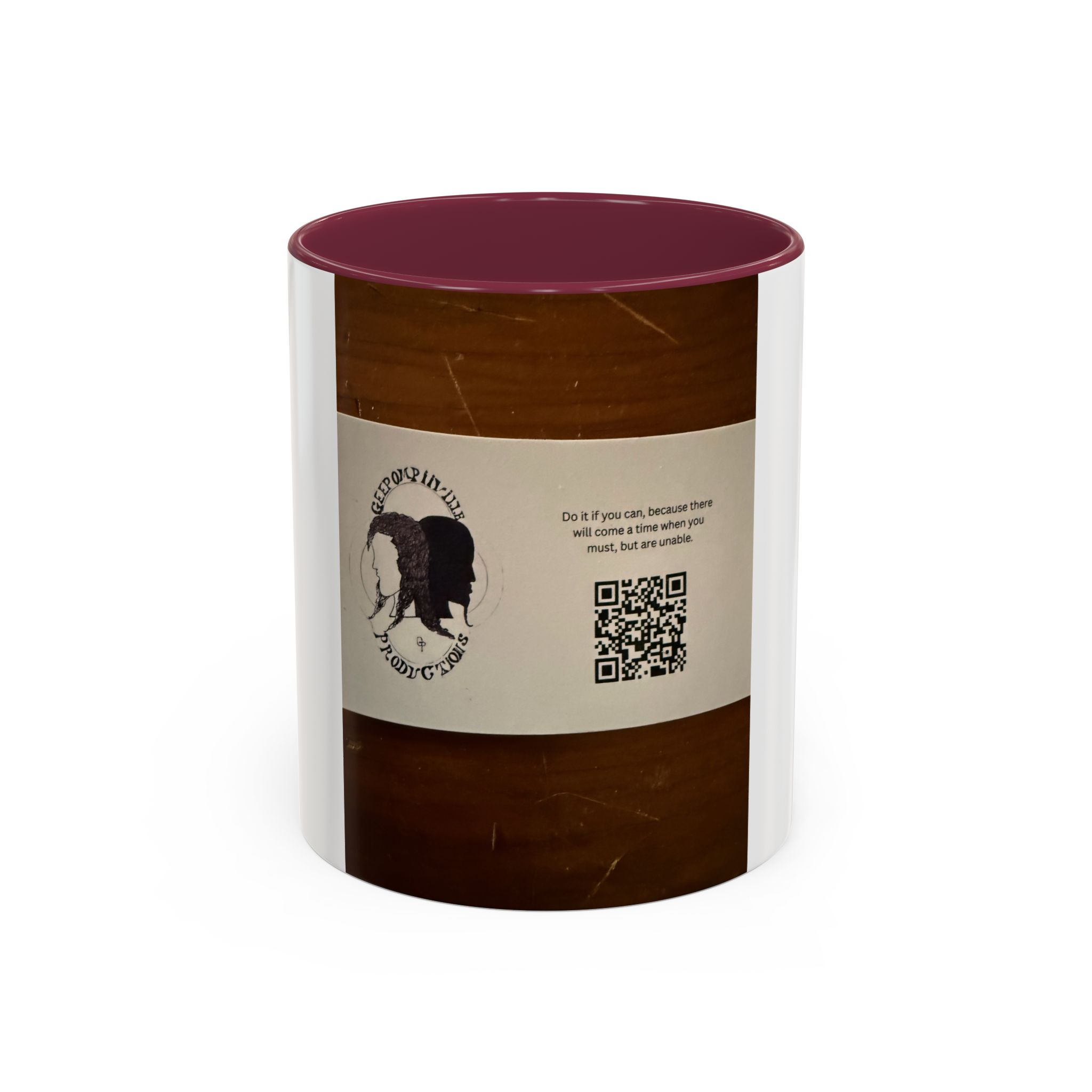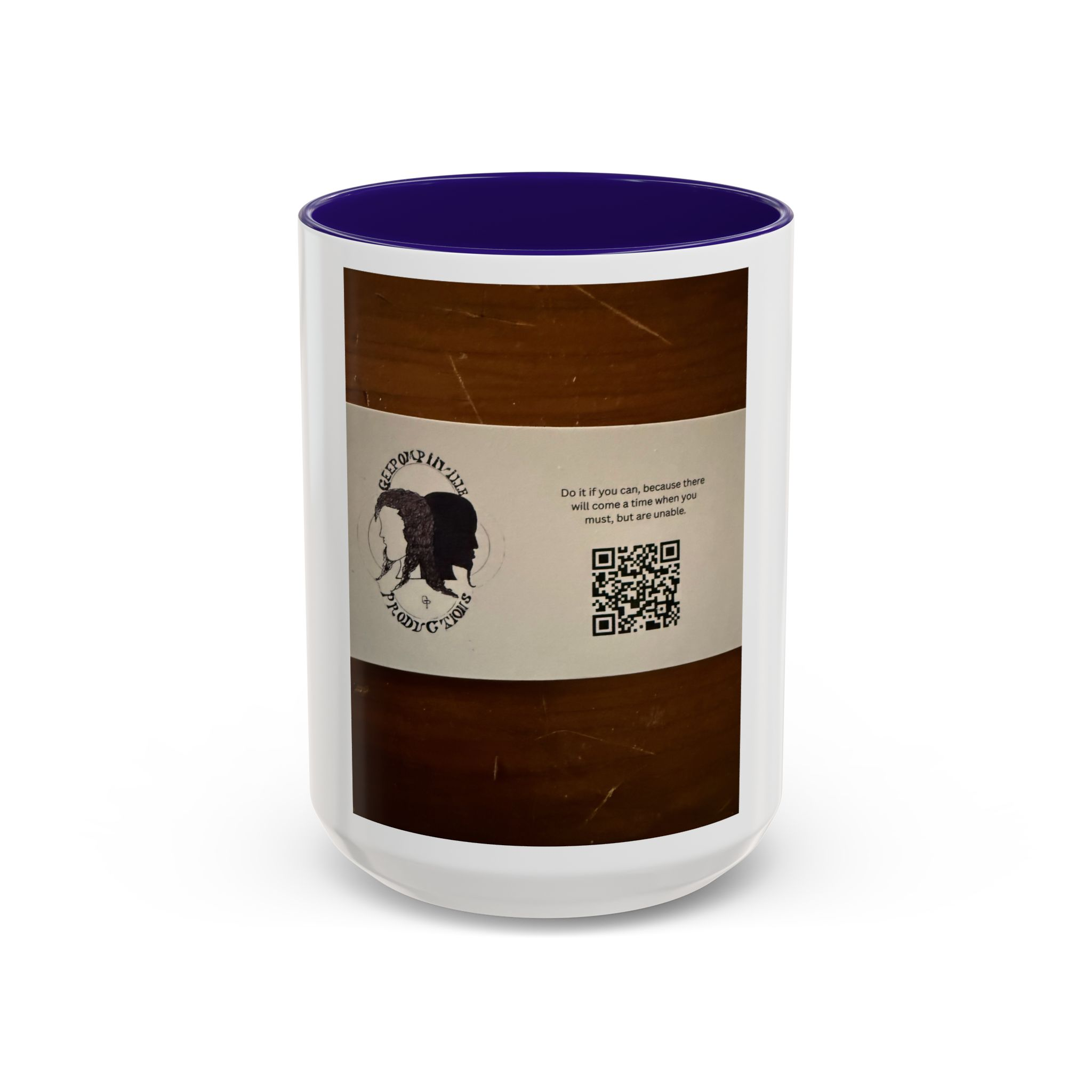 Be the first to review “Coffee Mug — Vintage Wood Grain Logo Design with QR Code (11oz/15oz)”